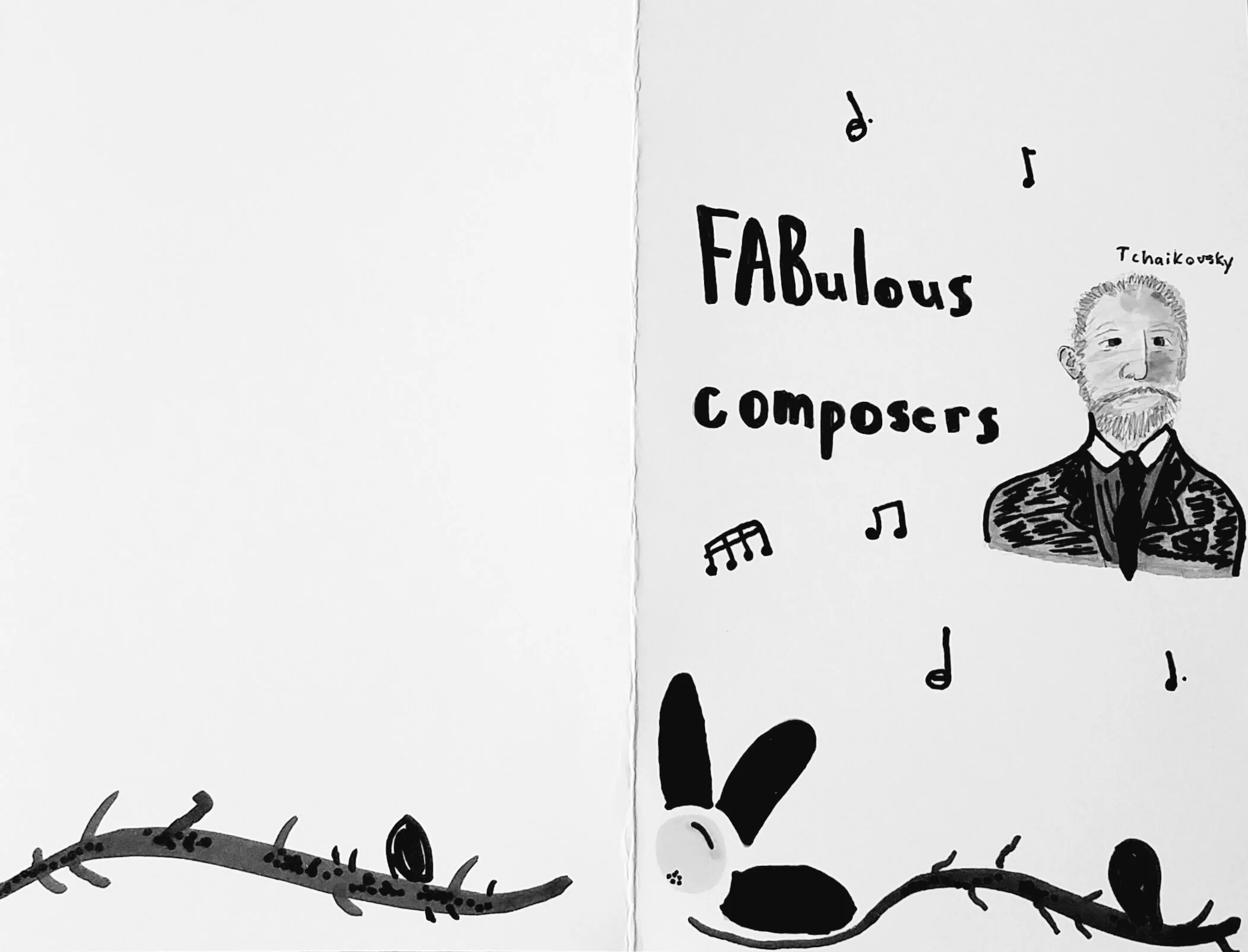 Winning designs will be used as program covers. The program cover will be printed on letter sized paper, folded in half in landscape format. So your design must be drawn on paper that measures 11 inches in total width and 8.5 inches in total depth. As the paper and your design will be folded in half, the right hand side of the paper and your design will form the front cover, measuring 5.5 inches in width and 8.5 inches in depth. The left hand side of your design will form the back cover of the program with the same 5.5 inch wide by 8.5 inch deep measurements. You can create two designs, one for the front cover and one for the back. Or create one continuous design. But if you choose the second option the design MUST work as a front and back cover when folded. The front cover design must incorporate the words “FABulous Composers”. Be as creative as you wish about how you incorporate these words.